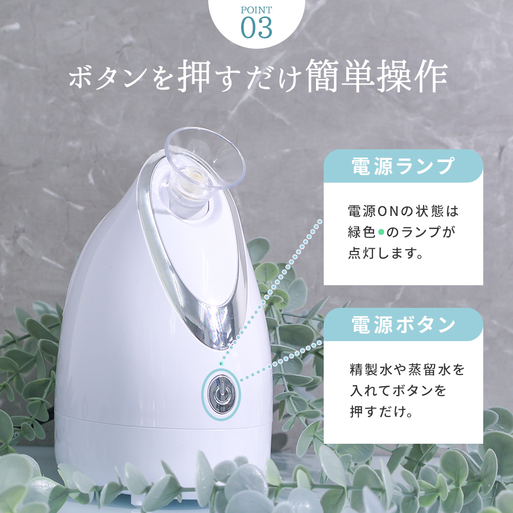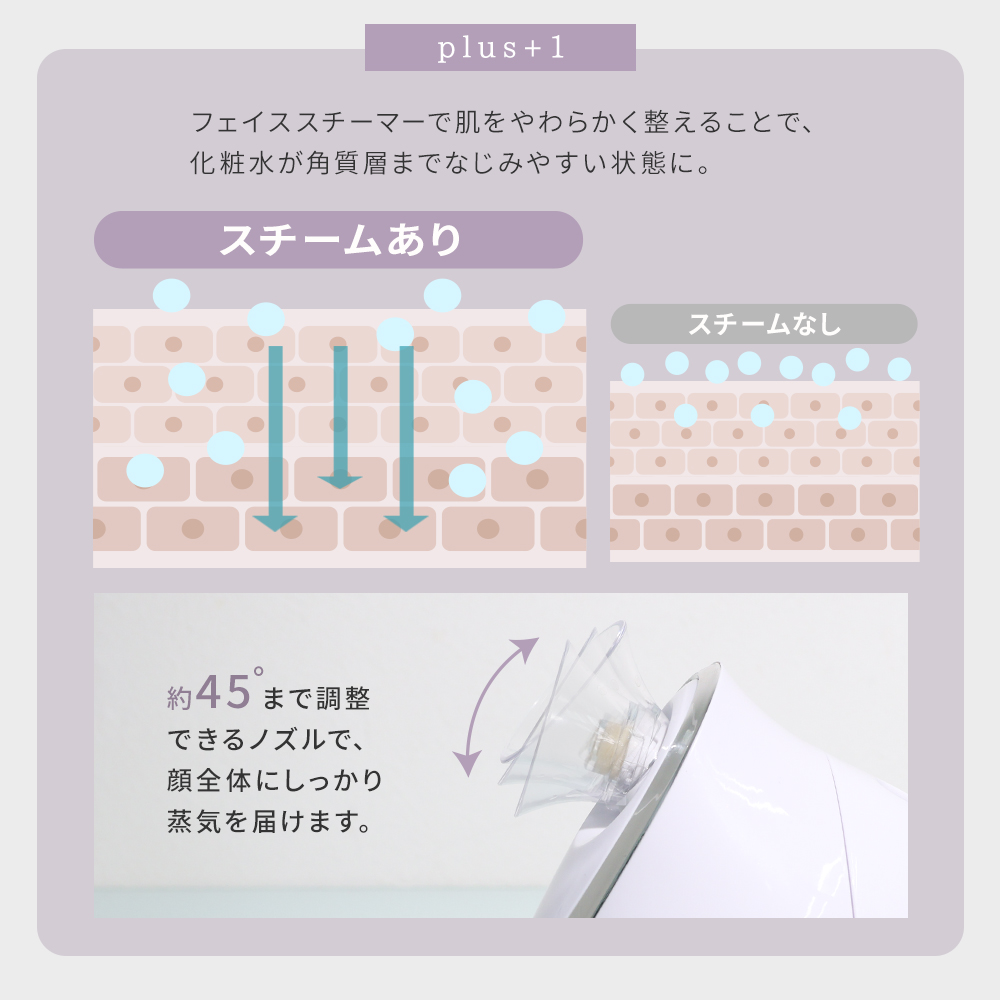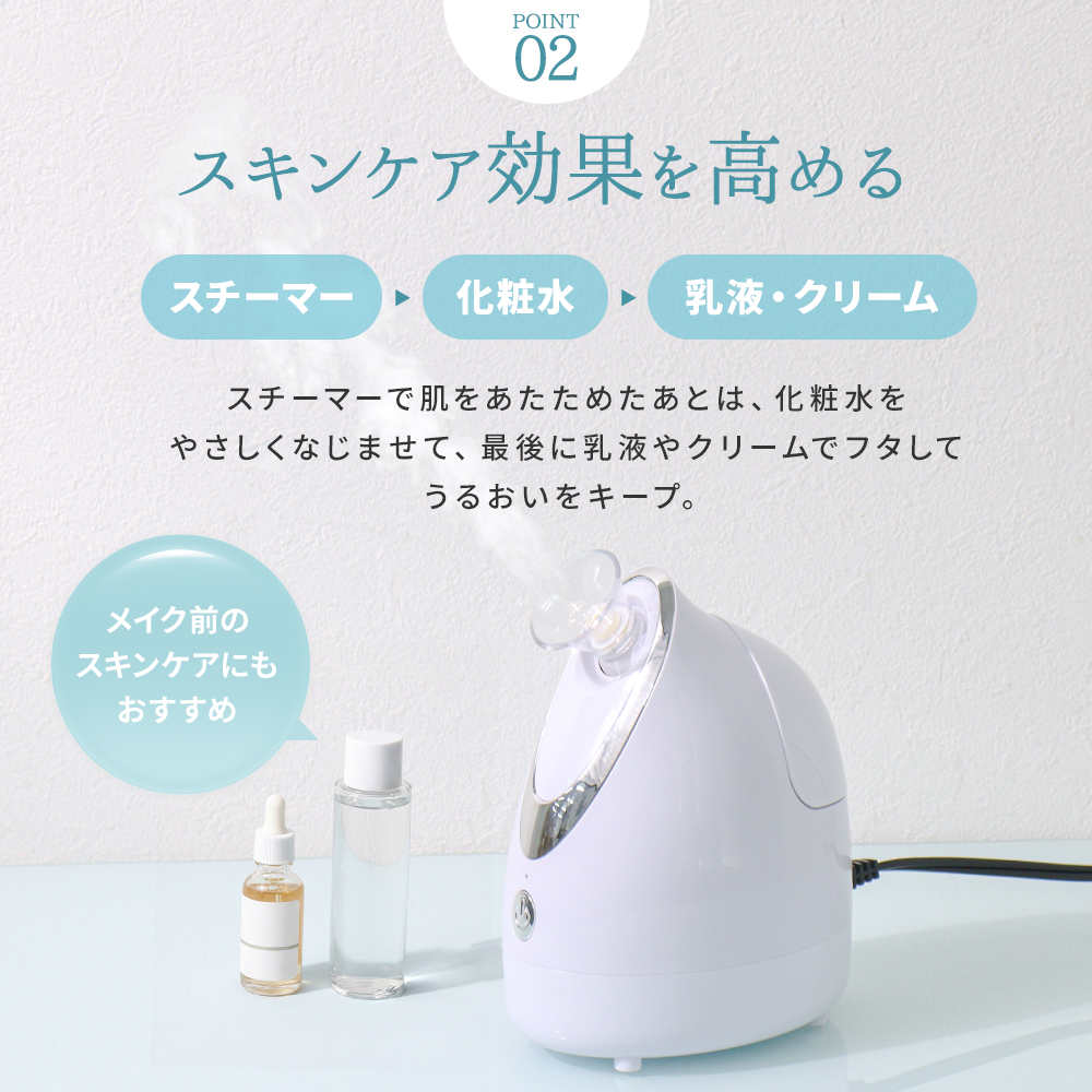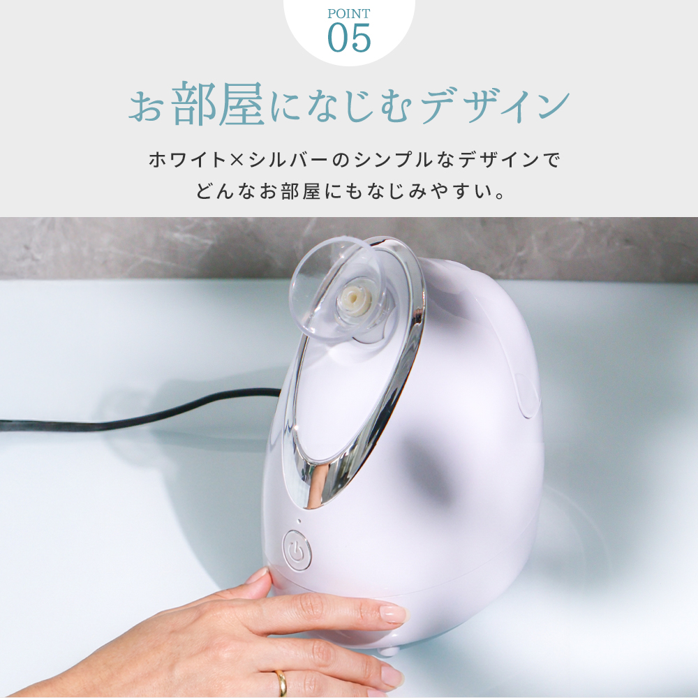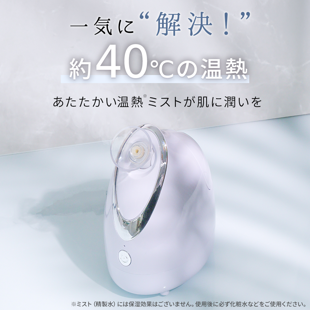 微細な温スチームがお肌を心地よく包み込み、乾燥しがちな季節の保湿ケアをサポート。角質層を柔らかく整えることで、毎日のスキンケアを格上げします。