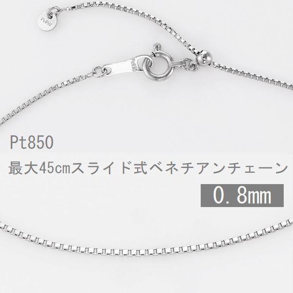 プラチナ850素材、太さ0.8mm、1.0mm、45cmスライド式、ベネチアンチェーンネックレス。