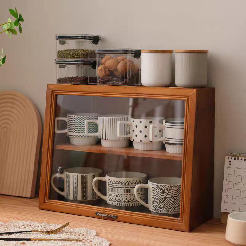 ミニ食器棚 木製 ガラス扉 卓上収納 調味料ラック Welina カウンター上をすっきり 上置きミニカップボード おしゃれキッチン収納 棚付きで便利