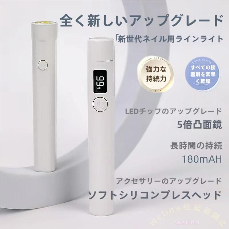 ジェルネイルライト ペン型 ミニ LED UV 3W 充電式 Welina(株) 小型 長待機 2段階タイマー 手足兼用 持ち運び 自宅ネイル かわいい