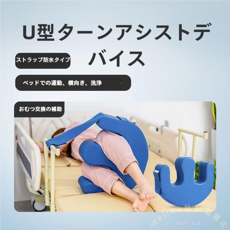 患者用ターニングデバイス U型介護寝返りクッション 床ずれ防止 リハビリ用具 看護 車椅子用クッション 高齢者、患者、身体障害の介護に適用 PUレザー 防水 青い