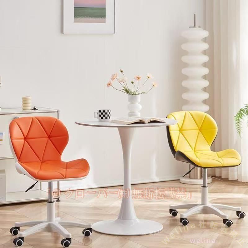 包み込まれる】座面から背もたれへのなめらかな曲線はホールド感がよい快適な座り心地です。ちょっと肘を置いて寛ぐのに丁度よい高さの背もたれです。場所が選ばず、使いやすいデザイン シンプルながら高級感漂う 洗練されたデザインを用いて、美しいと実用性を兼ね備えた完璧な組み合わせ、人体工学を基づく座面の形が身体を包み込んで、あらゆる状況にも適することができます。【適度な弾力のある座面】座面のキルティングと厚めのウレタンフォームとにより、適度な弾力があるクッション性が優しく支えてくれます。【高さ調節できる、座面360°回転】机の高さや身長やシーンに合わせて、フィットする高さでご使用できます。忙しいデスクワーク時も、手が届きやすく、さっと離席できるフットワークは最適です。