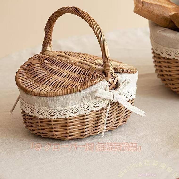 ピクニックバスケット 籐かご 蓋付き レース かわいい Welina(株) 収納かごとしても かごバッグ風 お出かけ/撮影小物に ナチュラルインテリアにも