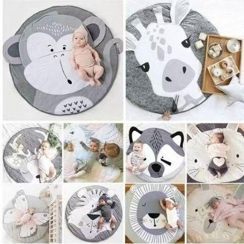 ベビープレイマット 洗える 動物柄 円形 直径90cm 綿素材 Welina 可愛いベビーマット 遊びマット 赤ちゃん 出産祝い 出産記念品 ギフト ラグマット お昼寝にも