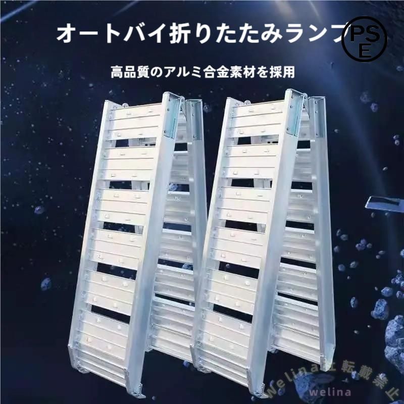 アルミラダーレール 折りたたみ 二つ折り スロープ 歩み板 Welina ツメ式フック付き バイク/農機具/車の積載に アルミブリッジ軽量