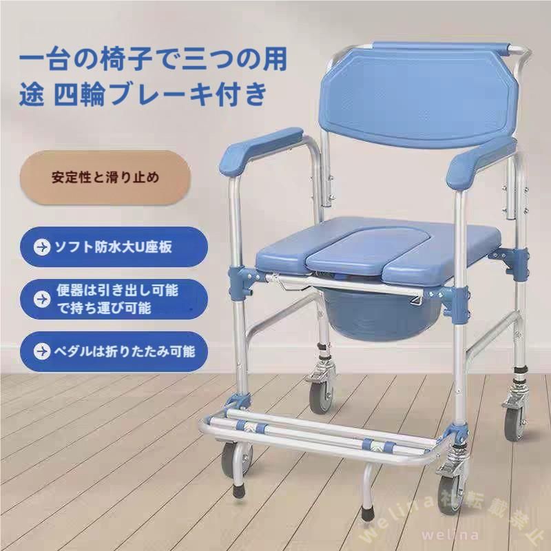 入浴用車いす シャワーチェア 椅子式トイレ Welina 省スペース 介護用キャリー 背もたれ付き 入浴/移動サポート
