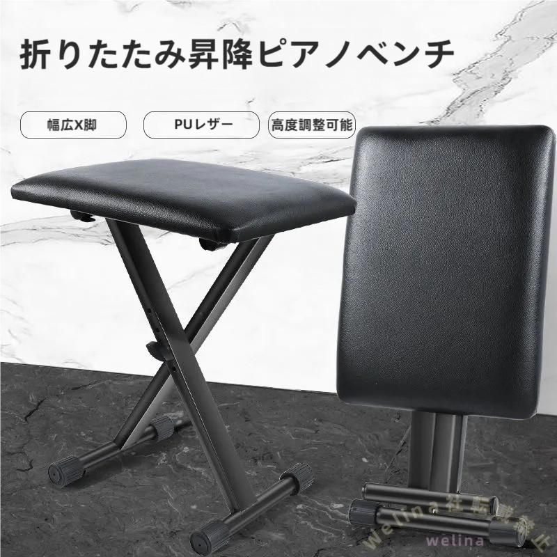 キーボードチェア 折りたたみ 高さ調節4段階 クッション付き Welina ピアノ椅子 キーボードベンチ スリム収納 背もたれなし 演奏用