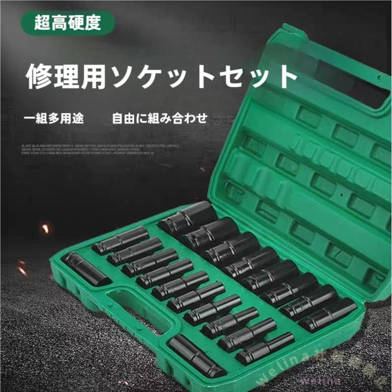 ディープソケットセット 20本 1/2(12.7mm) インパクト用 Welina ロングソケット 収納ケース付き 整備 DIY 工具セット ボルト作業に