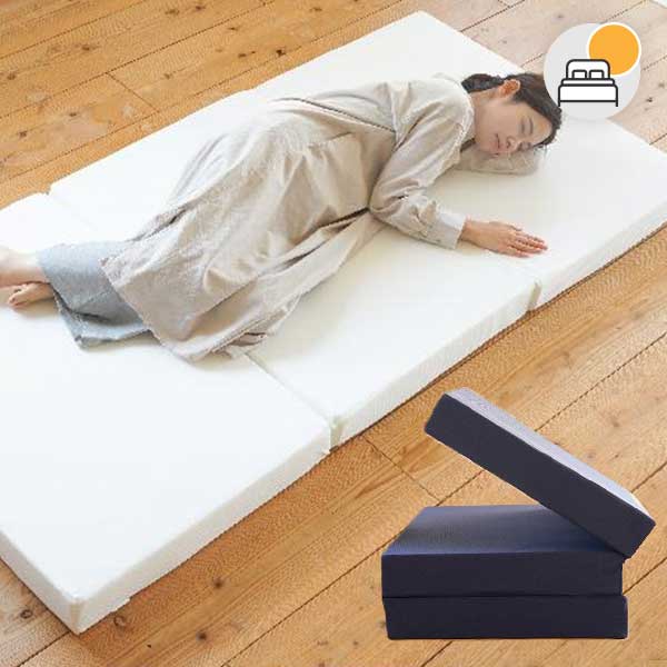 日本製 ネイビー ホワイト ウレタン 送料無料 マットレス 三つ折りマットレス 3つ折り 折りたたみマットレス