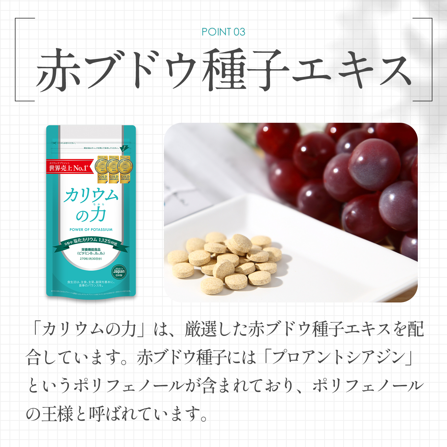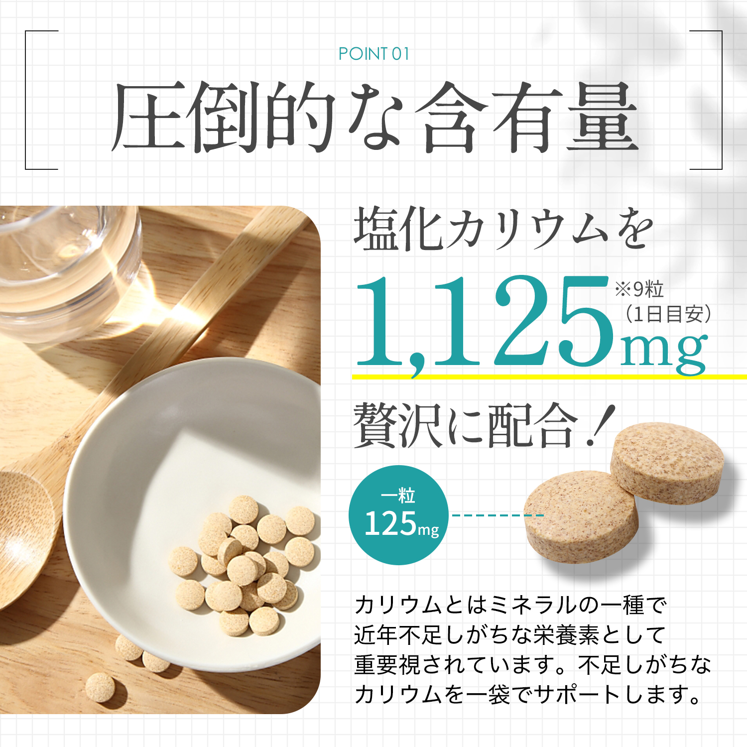 回答:1日の摂取目安量は9粒ですが、体調や目的に応じて目安量より減らしていく方向であればご自分の適量を見つけていただいて構いません。