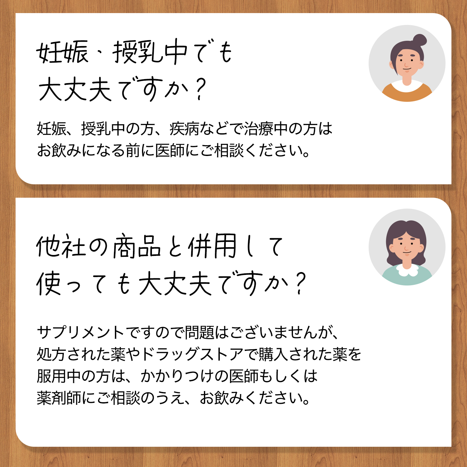 回答:妊娠、授乳中の方、疾病などで治療中の方は召しあがる前に医師にご相談ください。
