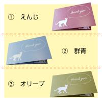 二つ折り サンクス カード|猫 おしゃれ thankyou お礼 ありがとう 誕生日 メッセージカード 名刺サイズ 3色から選べる 5枚