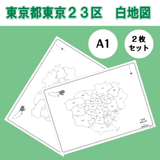 白地図 東京都 東京23区|関東地方 県庁所在地 地理 自由研究 大きな地図 受験勉強 夏休み 自宅学習 ビジネス 会議 A1
