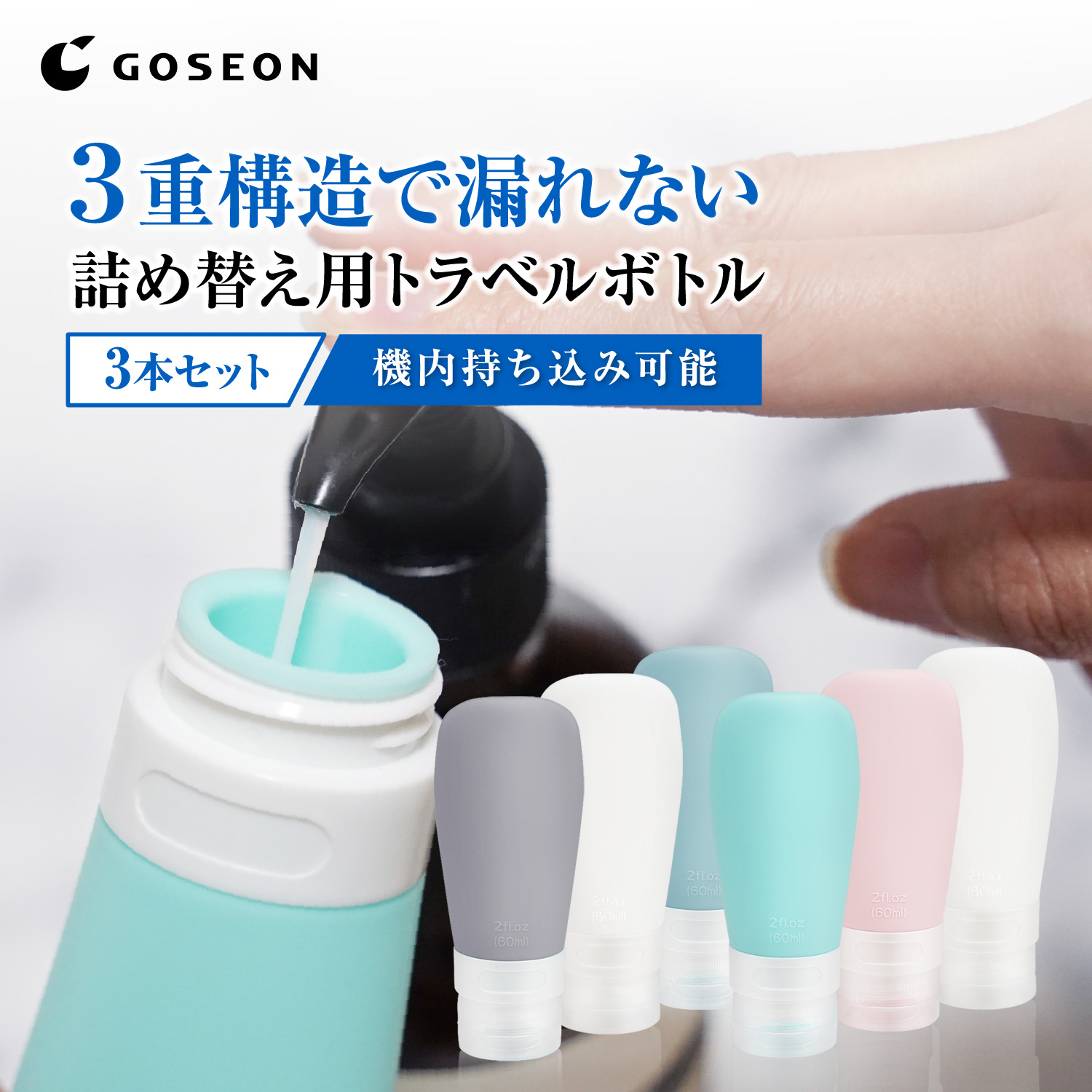 【液漏れを防ぐ特殊3重構造】旅行に必需品の液体ボトル。出張や旅先で液漏れを心配しないために開発したのがGOSEONの詰め替え用トラベルボトル。シリコンが蓋に隙間なく密着をし液漏れを防ぐ