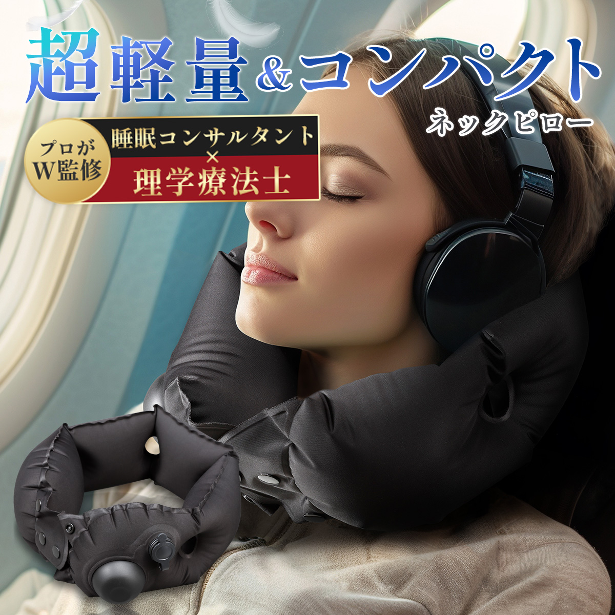 【手のひらサイズの超軽量・コンパクトトラベルピロー】旅を軽くをコンセプトに、約90g(収納袋・拡張パーツを除く)の軽量ネックピロー。