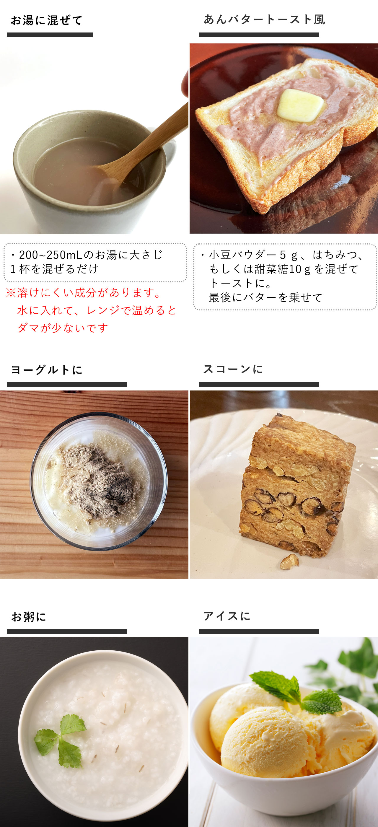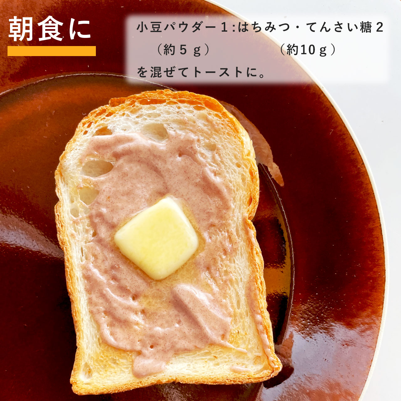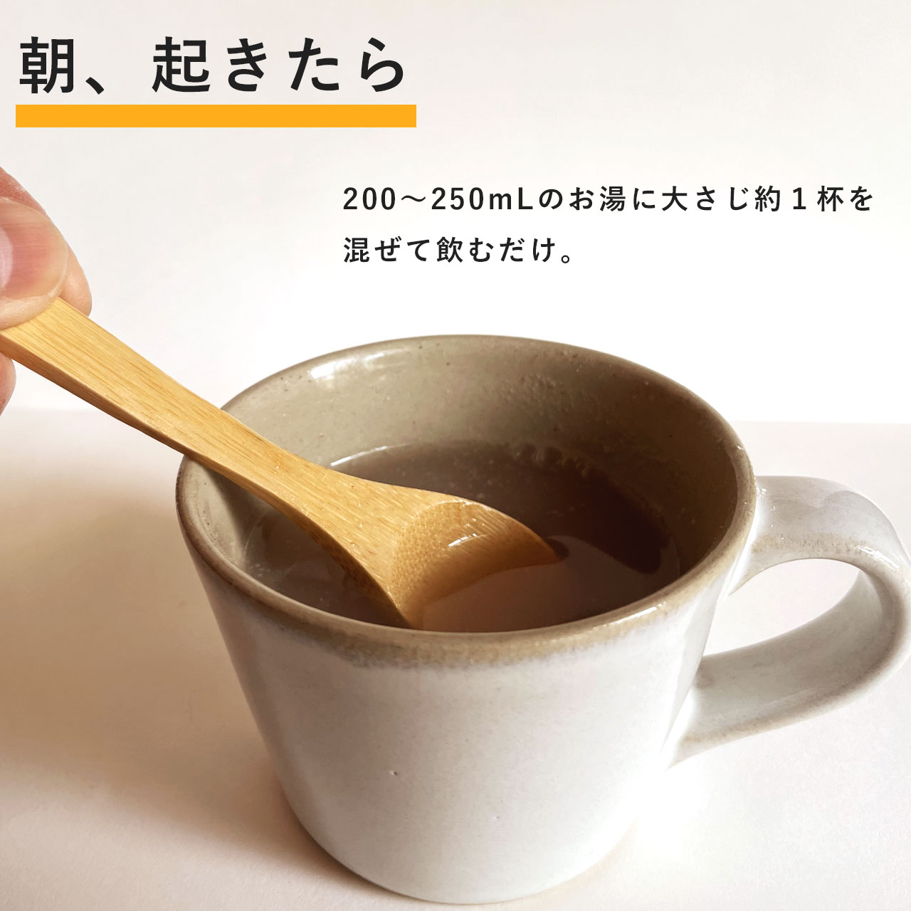 朝は、250mLのお湯に、大さじ1杯の小豆パウダーを溶かして飲んで、体の中からすっきり。
