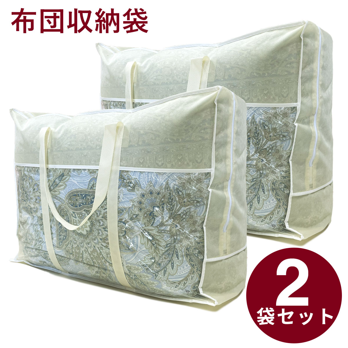 羽毛布団 収納袋 不織布 (2袋) ふとん収納袋 収納バッグ シングル ダブル 保管袋 ホコリ除け 持ち手付き 布団収納袋 布団 収納 立てられる 収納袋 ケース 衣類