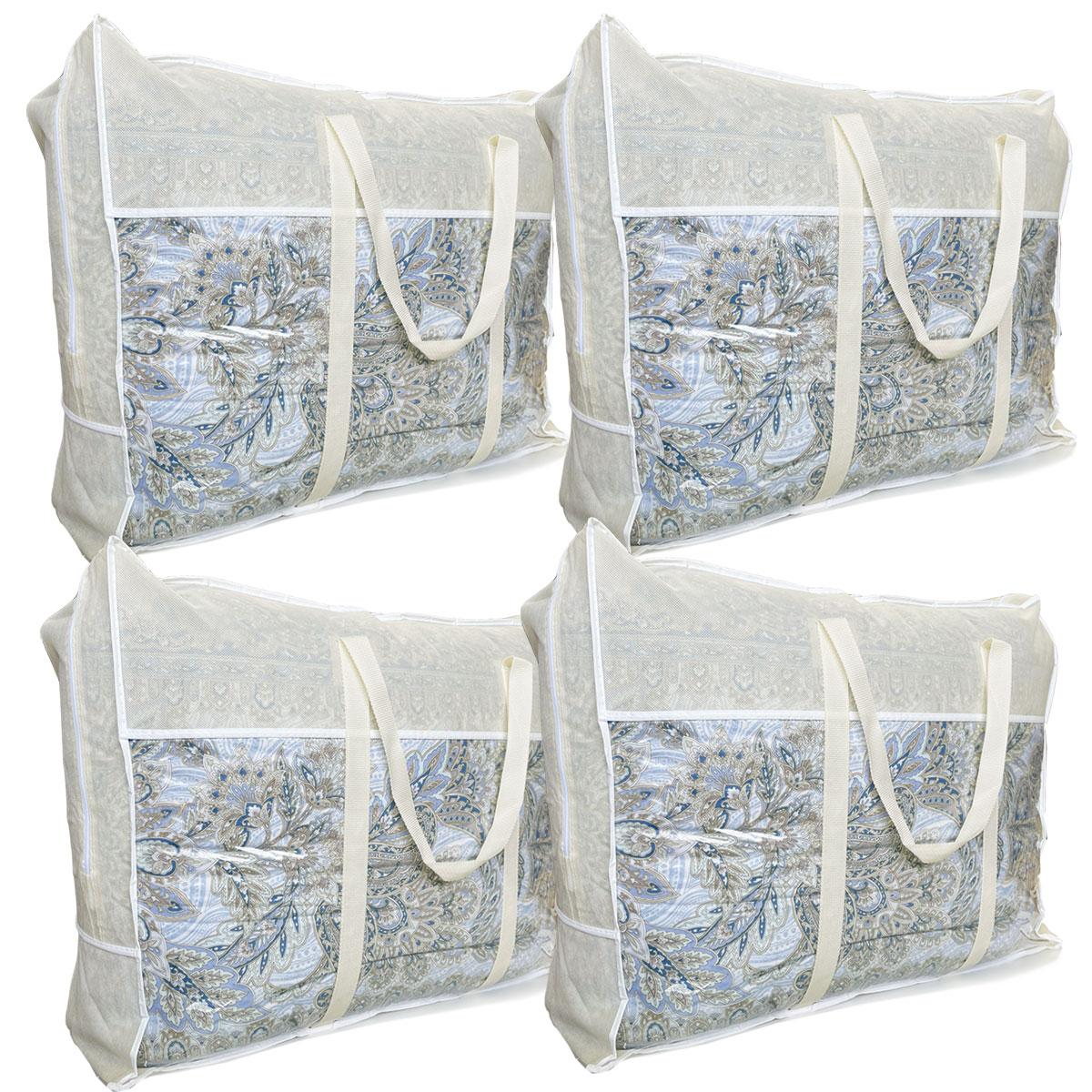 羽毛布団 収納袋 不織布 (4袋) ふとん収納袋 収納バッグ シングル ダブル 保管袋 持ち手付き 布団収納袋 布団 収納 ケース 衣類 布団入れ 布団収納 セット