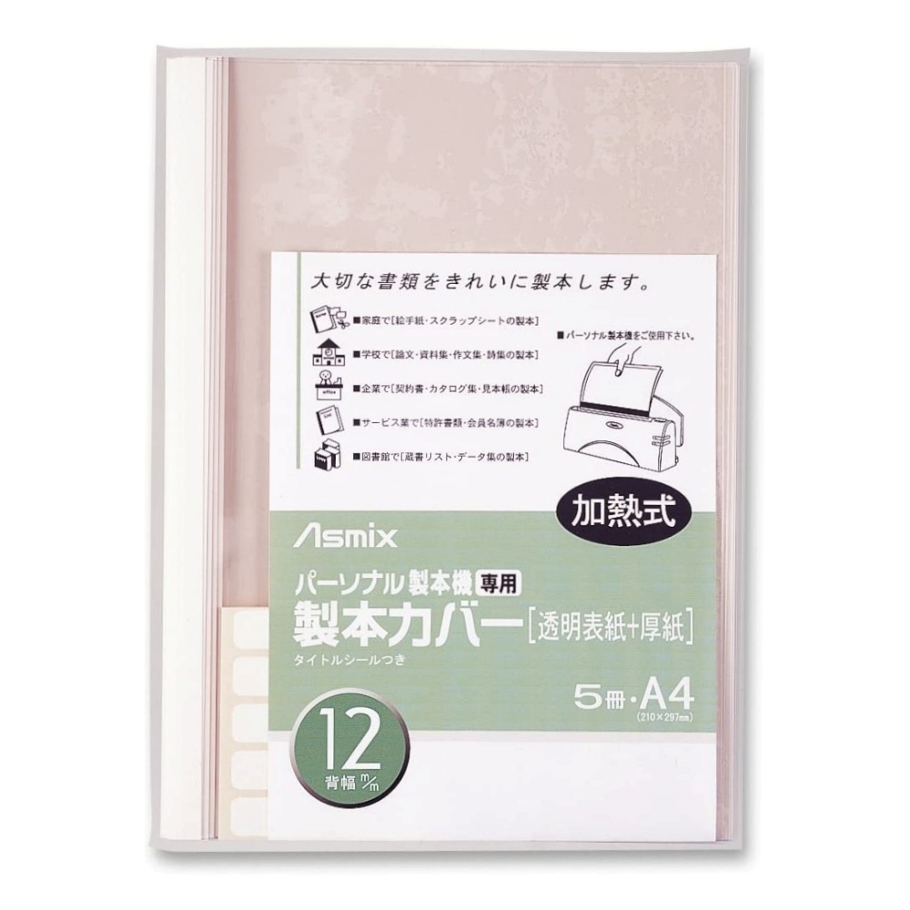 アスカ 製本カバー BH-308 A4 12mm幅 5冊入り ホワイト