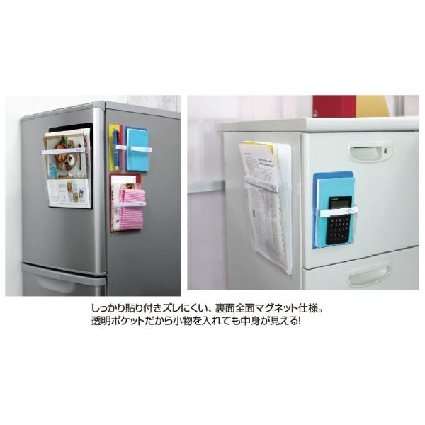 ホワイトボードや冷蔵庫などの金属面に貼れるマグネットタイプのポケット