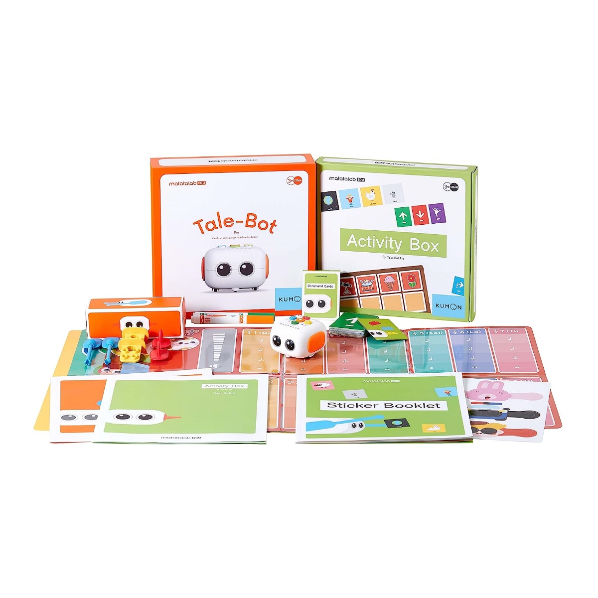 ■セット内容:テイルボット1個、組み替えパーツ:3セット、コマンドカード(32枚):1セット、言語切り替えシート:1枚、充電ケーブル:1個、ペン:2本、マップ:6枚、ガイド:2冊、ステッカーブック:1冊、ペーパークラフト:1枚