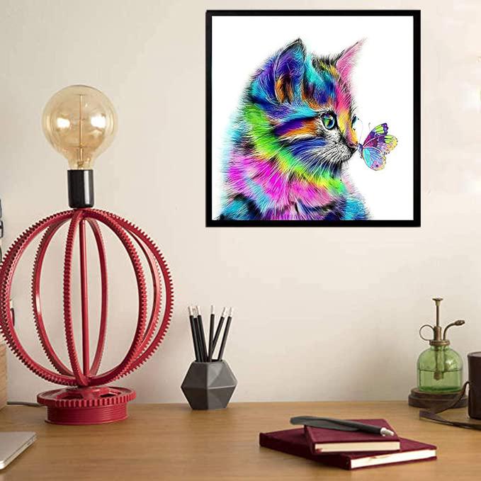 5Dダイヤモンド 刺繍キット 猫 図柄印刷 動物 ねこ かわいい 図案 居間 リビング インテリア 飾り 初心者向け 手芸キット 送料無料