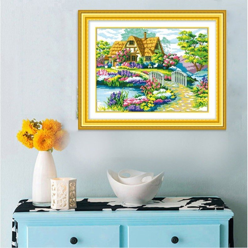 クロスステッチ 刺繍キット やり方付き 幸せな花小屋 送料無料 上級者向け 家庭刺繍装飾品 裁縫 ホームデコレーション 脳トレ手芸 贈り物 壁アート パネル 芸術