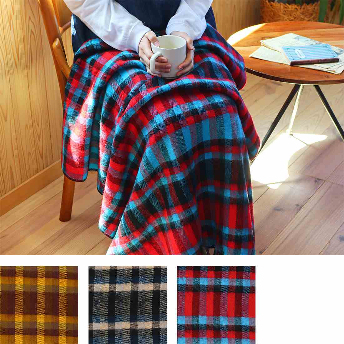 お昼寝タイムのブランケットやコーヒーブレイクのひざ掛けなど様々な用途に。