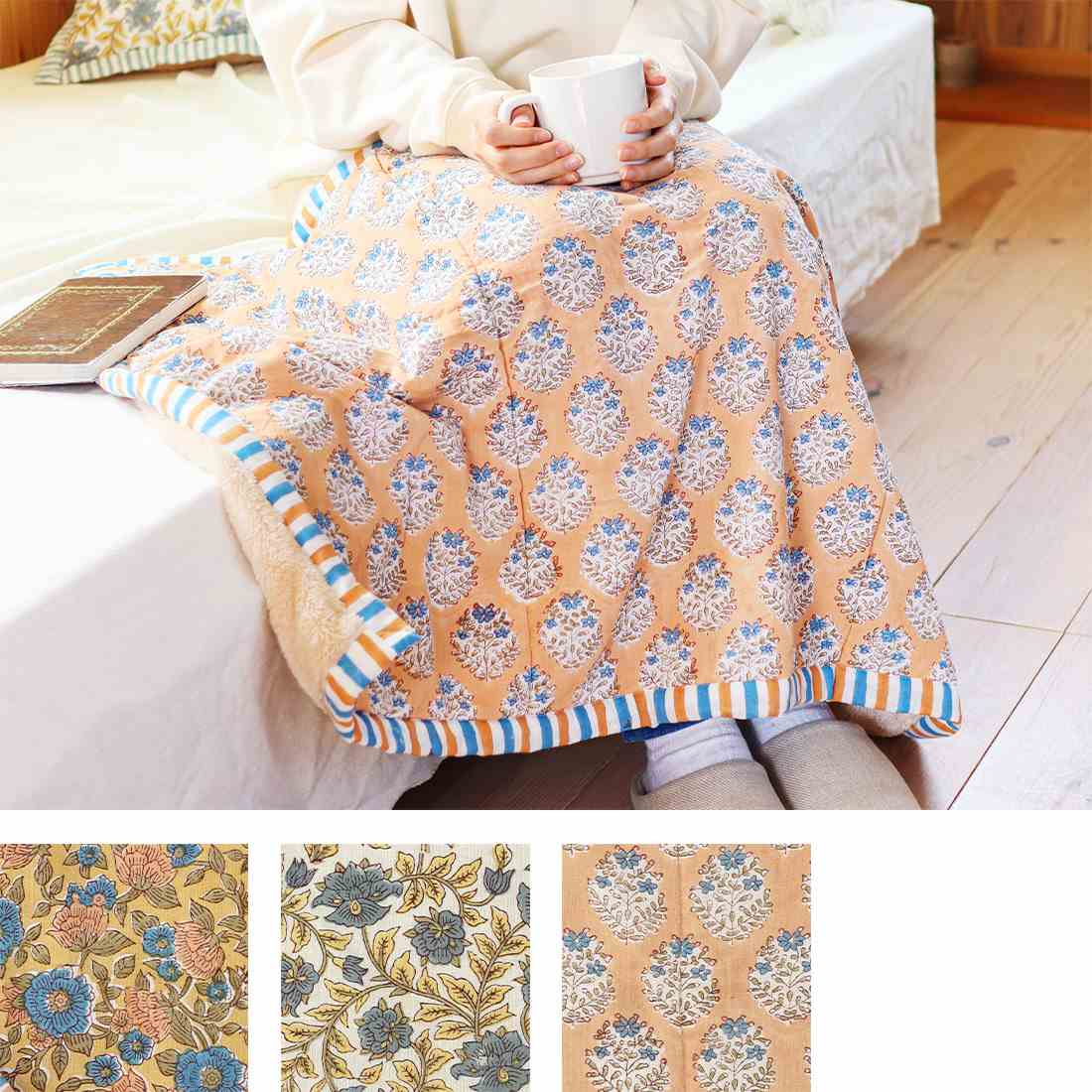 味わいのある花柄はインド伝統のブロックプリント。