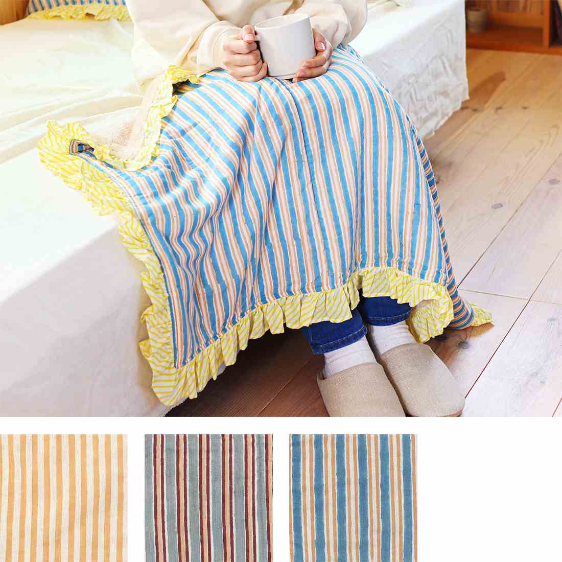TMC ブランケット フリル ストライプブロックプリント 11725-006-218/219/220 ひざ掛け