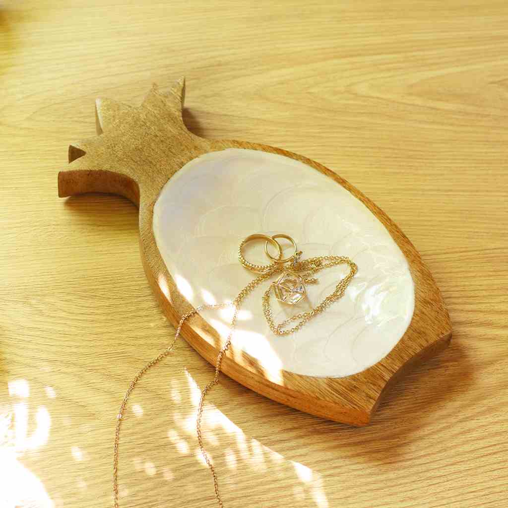 ハンディクラフト感あふれるウッドと涼やかなエナメル塗装がおしゃれなトレイです。