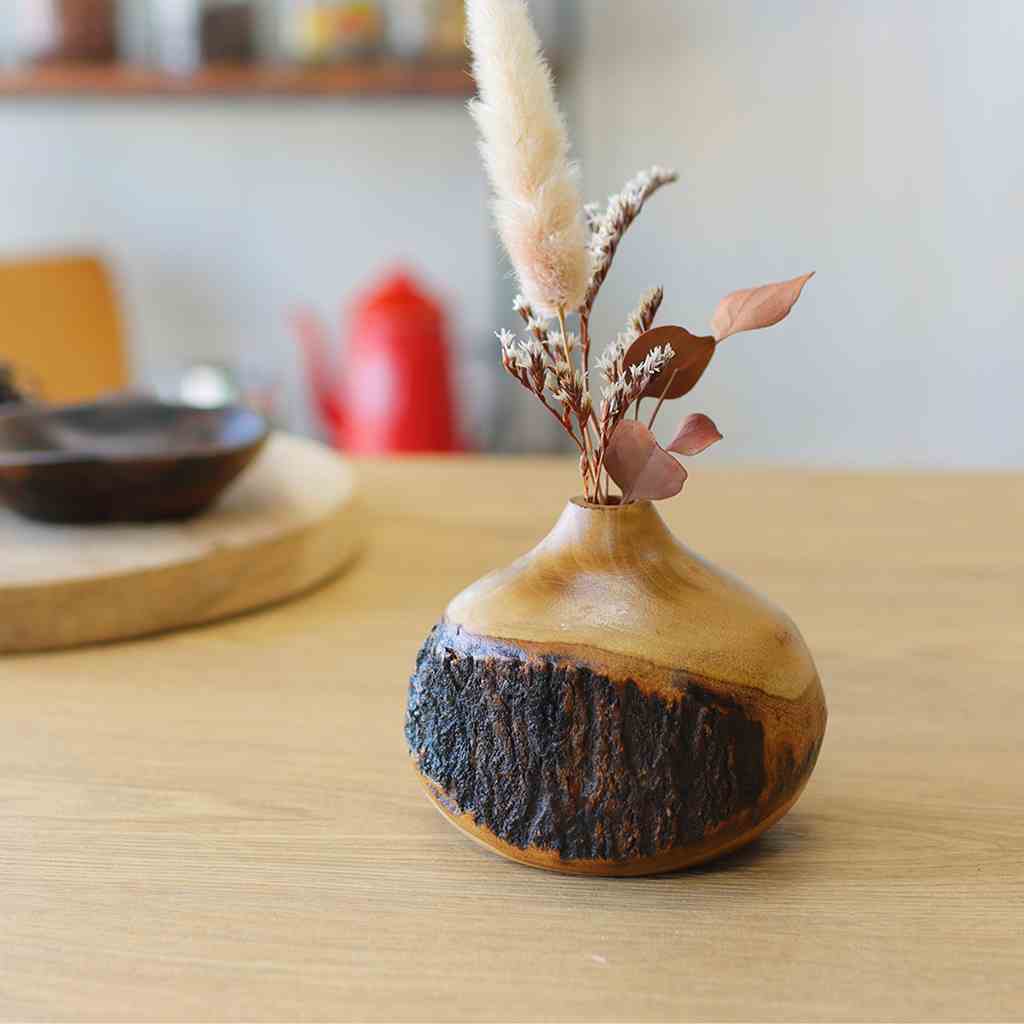 マンゴーウッドをそのまま活かした、ナチュラルテイストのフラワーベース。