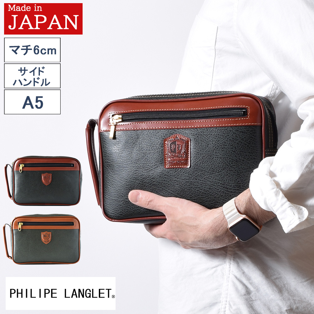 セカンドバッグ メンズ 持ち手付き バック クラッチ ポーチ 紳士 男性 日本製 A5 誕生日 プレゼント 敬老の日 2025 父 50 60 70 80代 PHILIPE LANGLET 25939