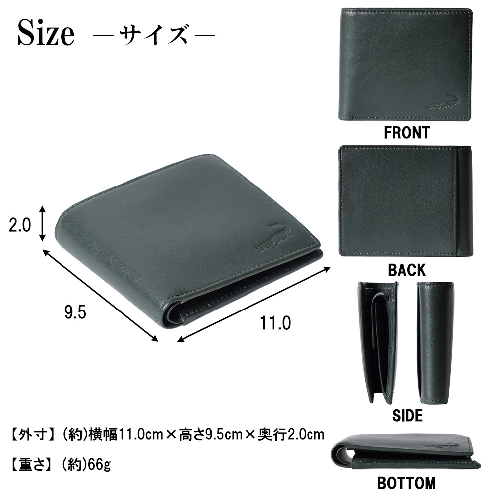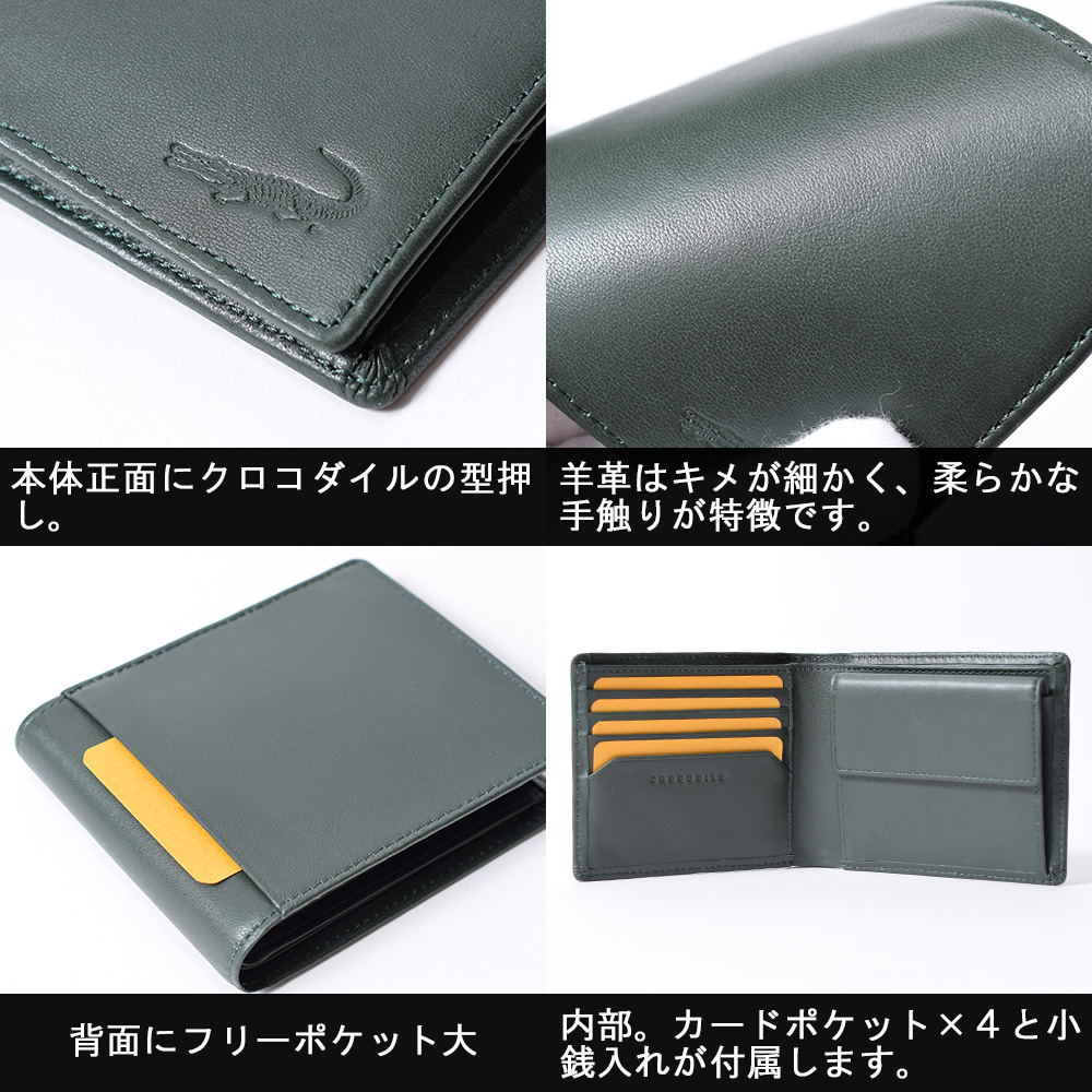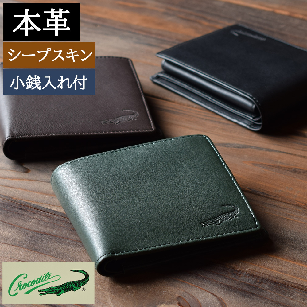 Crocodile クロコダイル 二つ折り財布 メンズ 羊革 男性用 紳士財布 6cm052