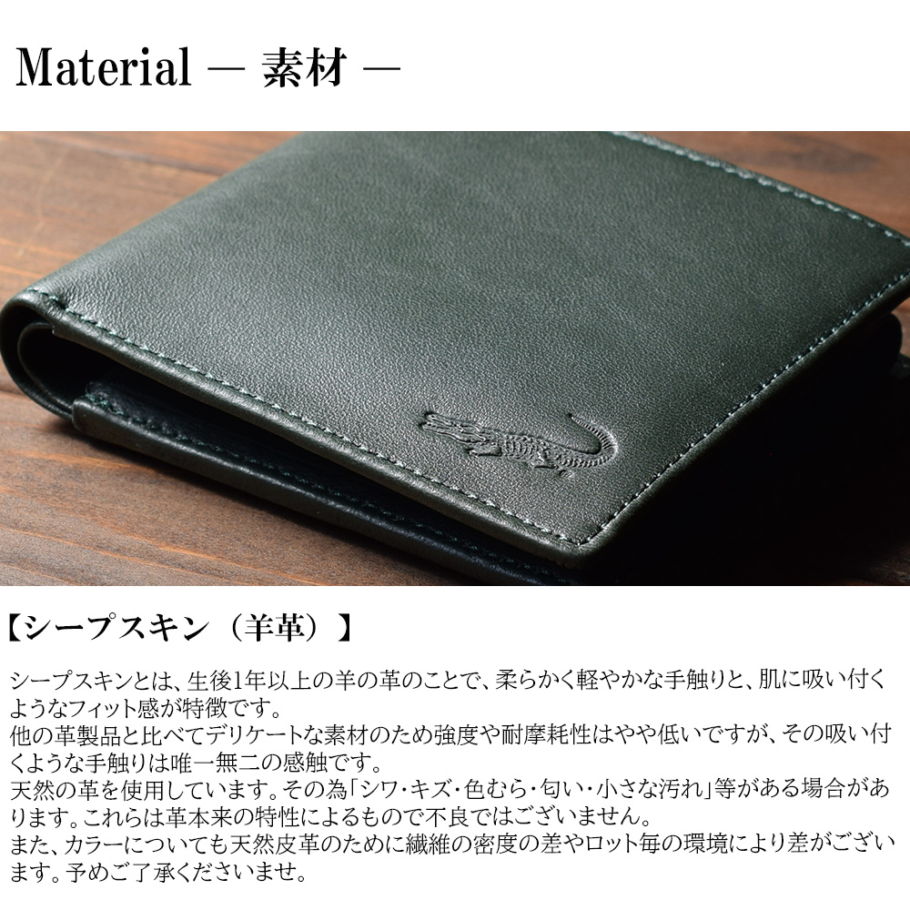 財布 メンズ 二つ折り 羊 本革 グリーン 緑 やわらかい おしゃれ 誕生日 プレゼント 敬老の日 2025 父 ギフト 父 40代 50代 60代 70代 80代 クロコダイル 6cm052