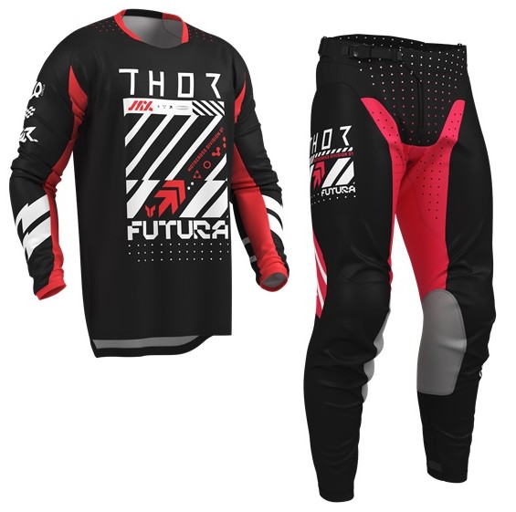 L/32インチ MXウエア 上下セット THOR LAUNCH FUTURA ブラック/レッド ジャージ&パンツ モトクロス 正規輸入品 WESTWOODMX 26