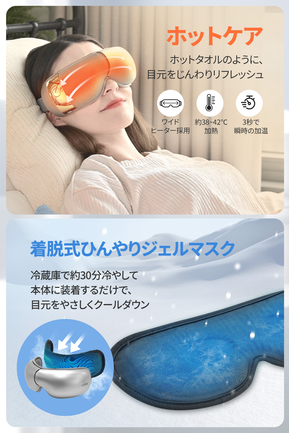 ・本体に装着できる専用ジェルマスクで、目もとをクールダウン