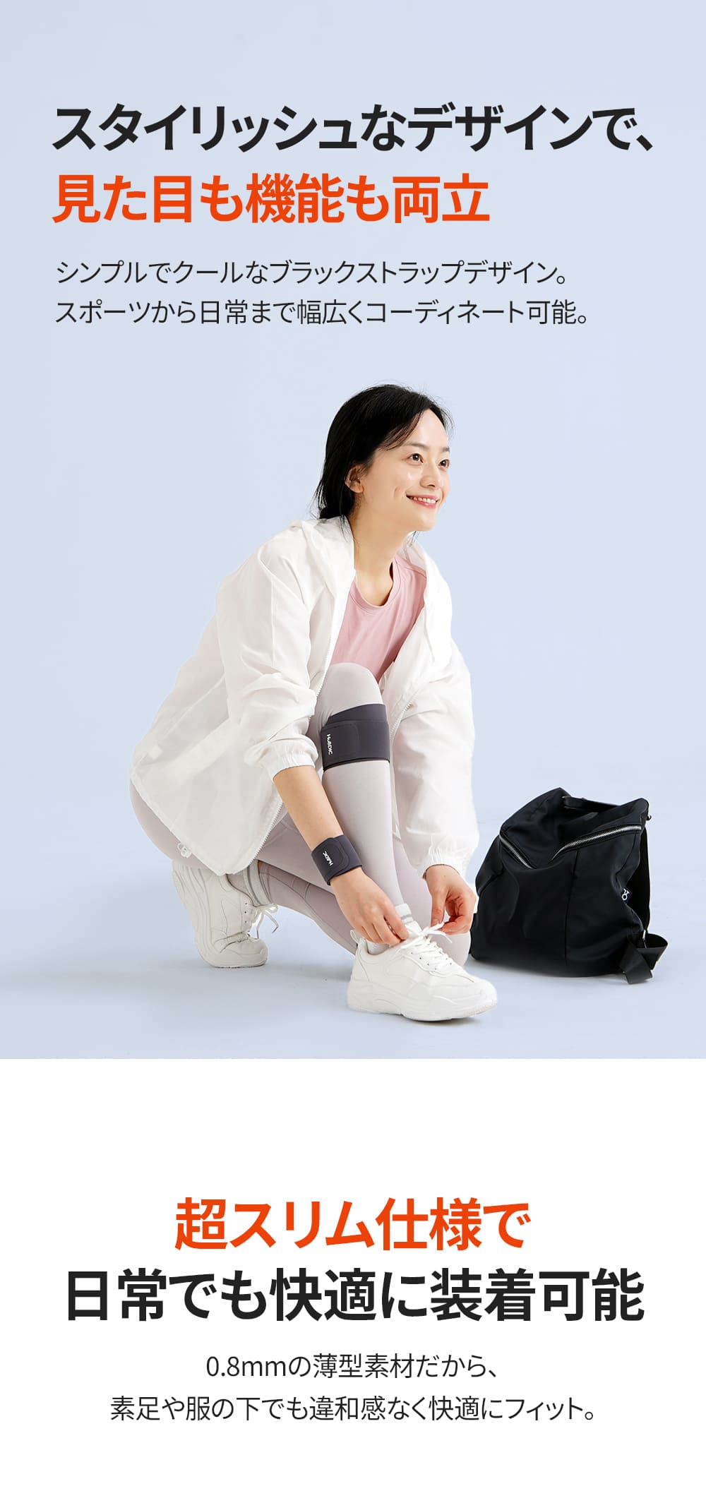 左右兼用で素早く着脱可能。運動前後や日常使いにも便利。