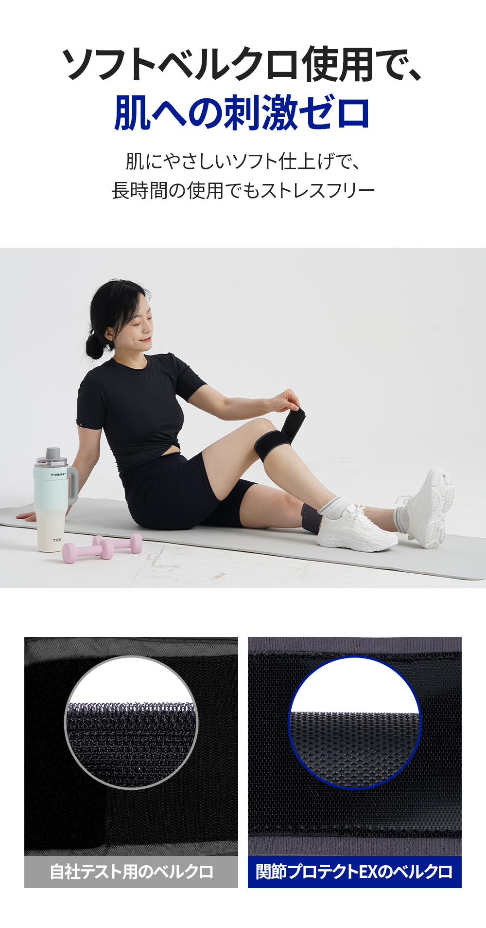 優れた弾性と圧迫力で膝をしっかり保護し、動作時の負担を軽減。
