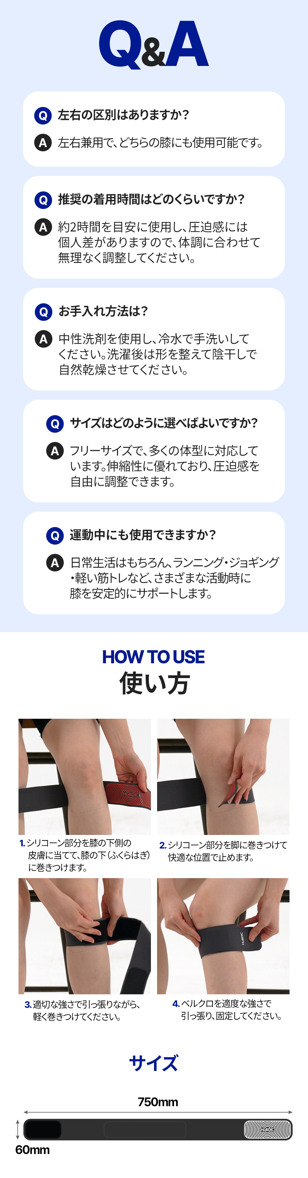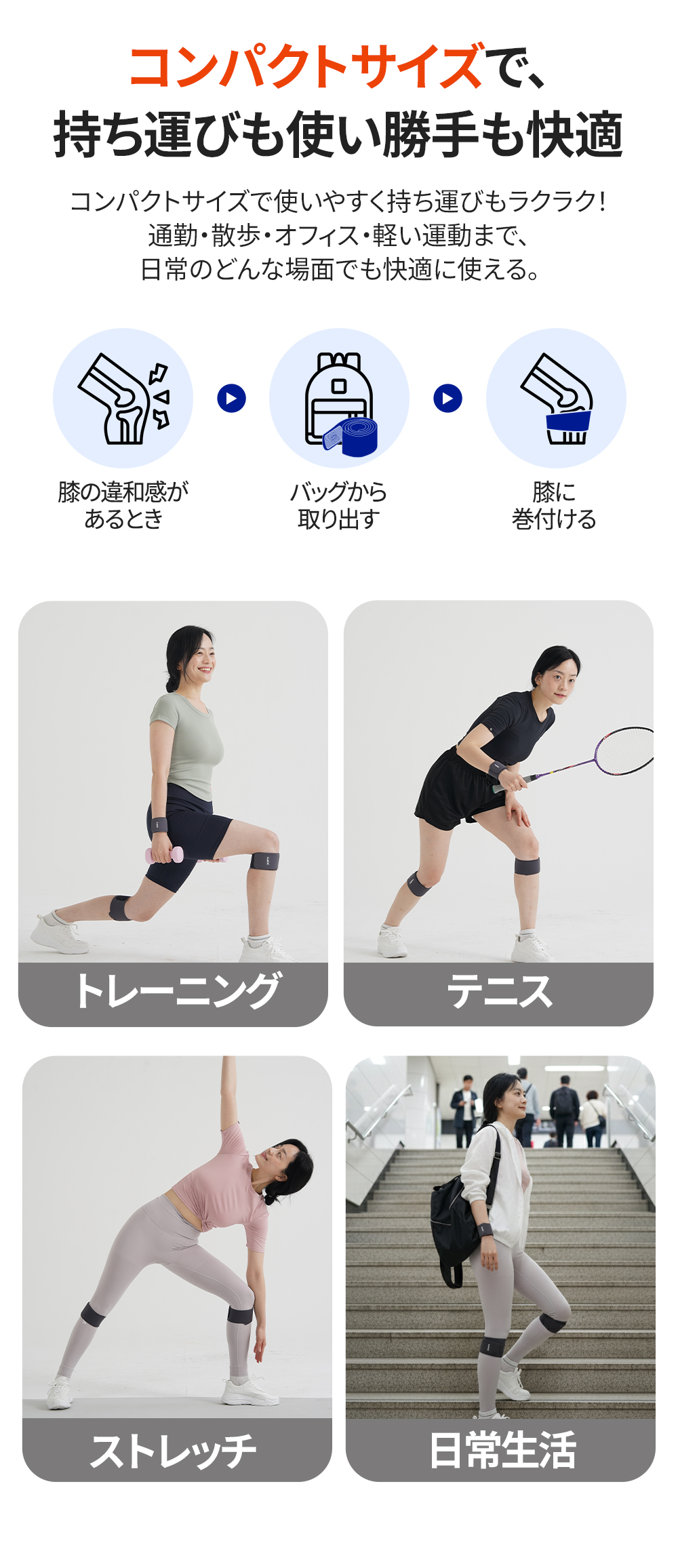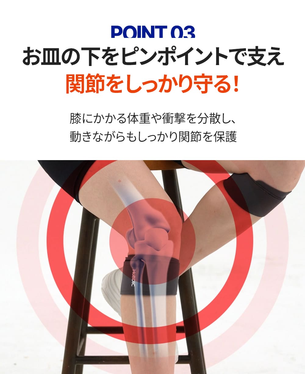 膝蓋骨の安定・保護を目的としたサポート。ランニングや筋トレ、登山、日常生活まで幅広く活躍し、信頼性の高い品質で関節ケアを支えます。※届出番号:13BX10226000105