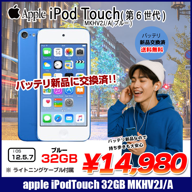 【新品バッテリに交換済】Apple iPod touch6 第6世代 MKHV2J/A [32GB 4インチRetinaディスプレイ Wi-Fi カメラ iOS12.5.7 ブルー] :良品 中古 アイポッド