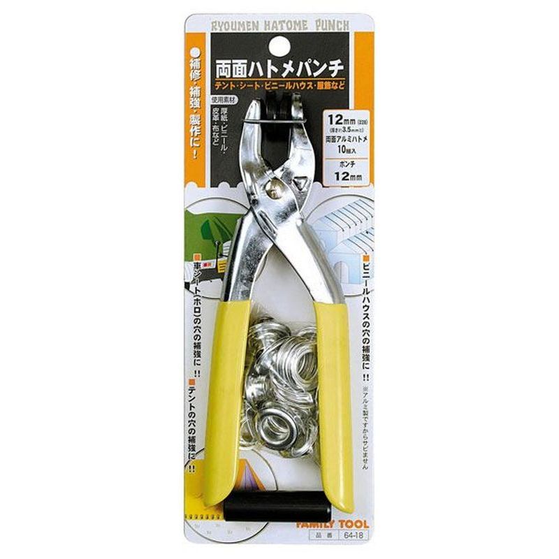 ハトメパンチ 両面 両面ハトメパンチ ハトメ付き 60106 64-18 両面ハトメパンチセット 12mm [ #28 ] アルミ製ハトメ10組付 FamilyTool ファミリーツール ミツトモ製作所