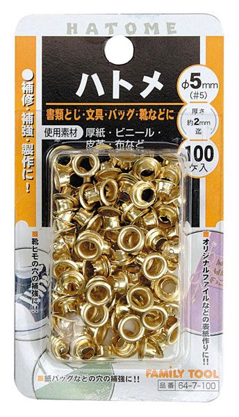 ハトメ イチネンミツトモ FAMILY TOOL ハトメ 真鍮メッキ 5mm 100個入 64-7-100 4976463064070