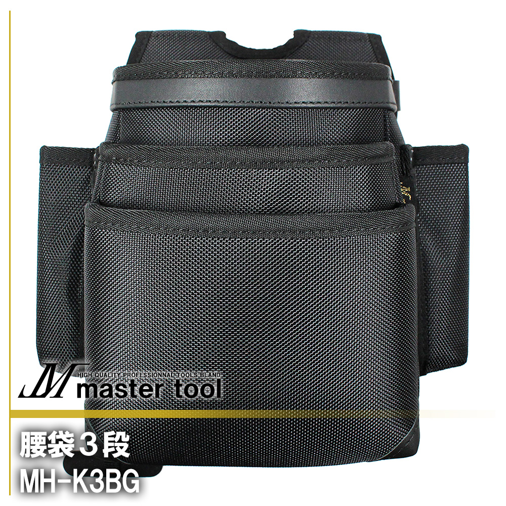 MASTER TOOL マスターツール 木村 腰袋3段 MH-K3BG 腰道具PROシリーズ 大型カッターナイフ すっぽり収納 水抜き穴 プラスチック補強 型崩れしにくい心材