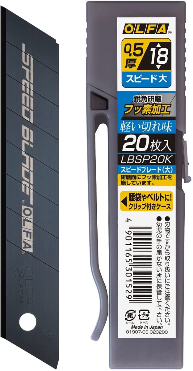 OLFA オルファ スピードブレード 大 20枚入り カッターナイフ カッター 替刃 替え刃 クリップ付き新替刃ケース 折る刃式 大型刃 LBSP20K 4901165301529