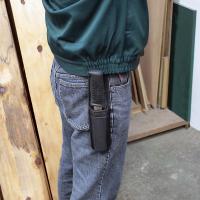 ●腰袋が干渉するような壁間の狭い現場で重宝します。収納時の製品保護にも便利。