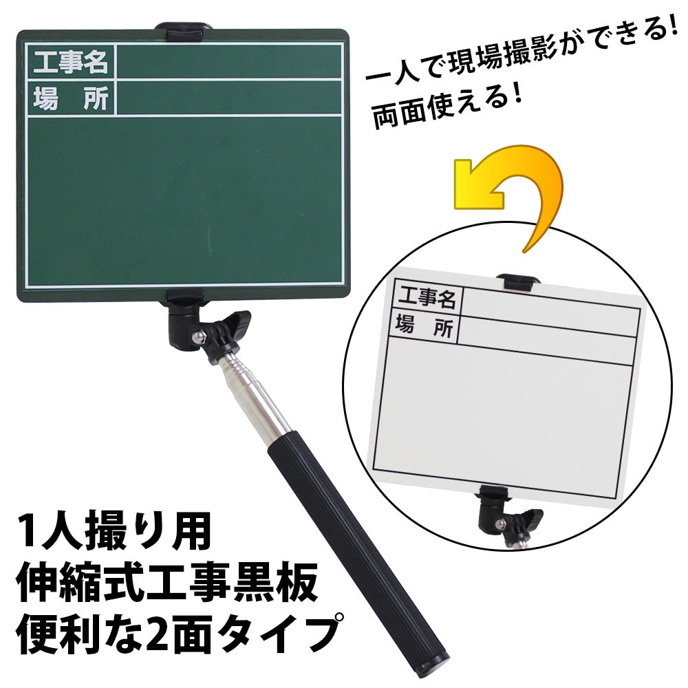 BIGMAN 工事用黒板 自撮り棒 ミニ黒板 黒板 白板 手持ち 伸縮 2面 ホワイトボード 1人撮り用 工事用写真 写真 工事現場 撮影 BSB-175W 4962308521501