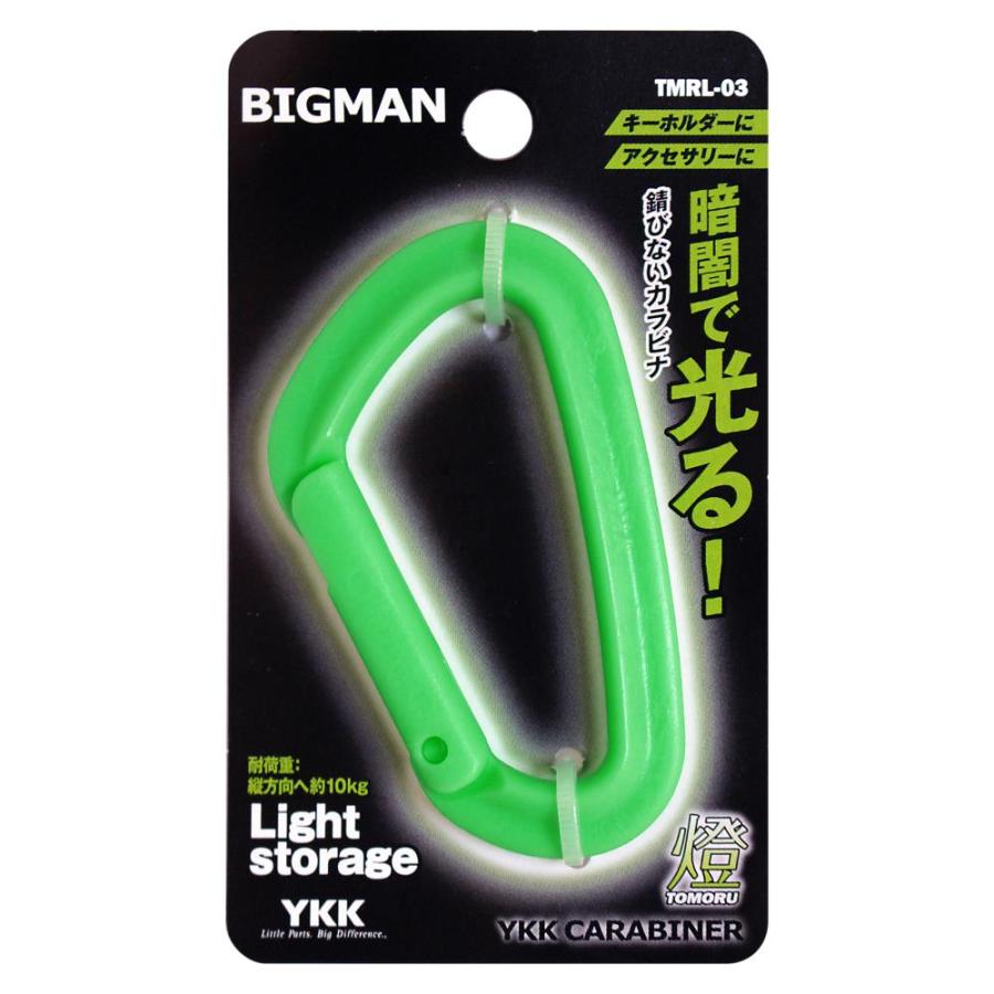 カラビナ 光る 蓄光 樹脂 軽量 屋外フェス アウトドア サビない キーホルダー 暗闇 アクセサリー キャンプ 釣り BIGMANCARABINER 燈大 蓄光 緑 4962308805496