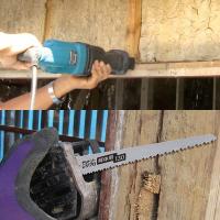 木材に打ち込んである釘や窓枠のアルミサッシも楽々切断