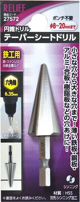 リリーフ RELIEF 六角軸テーパーシートドリル 直径8-20mm 鉄工用 27572